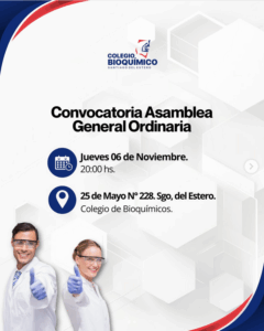 - Convocatoria a Asamblea📢 La Comisión Directiva del Colegio Bioquímico de Santiago del Estero invita a todos los socios a participar en la próxima renovación de autoridades. Creemos en la importancia del recambio institucional y en el valor de las nuevas ideas para seguir creciendo.