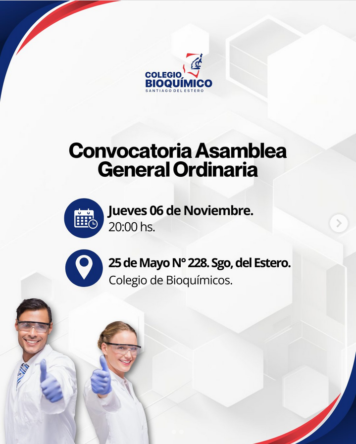 📢 La Comisión Directiva del Colegio Bioquímico de Santiago del Estero invita a todos los socios a participar en la próxima renovación de autoridades. Creemos en la importancia del recambio institucional y en el valor de las nuevas ideas para seguir creciendo.