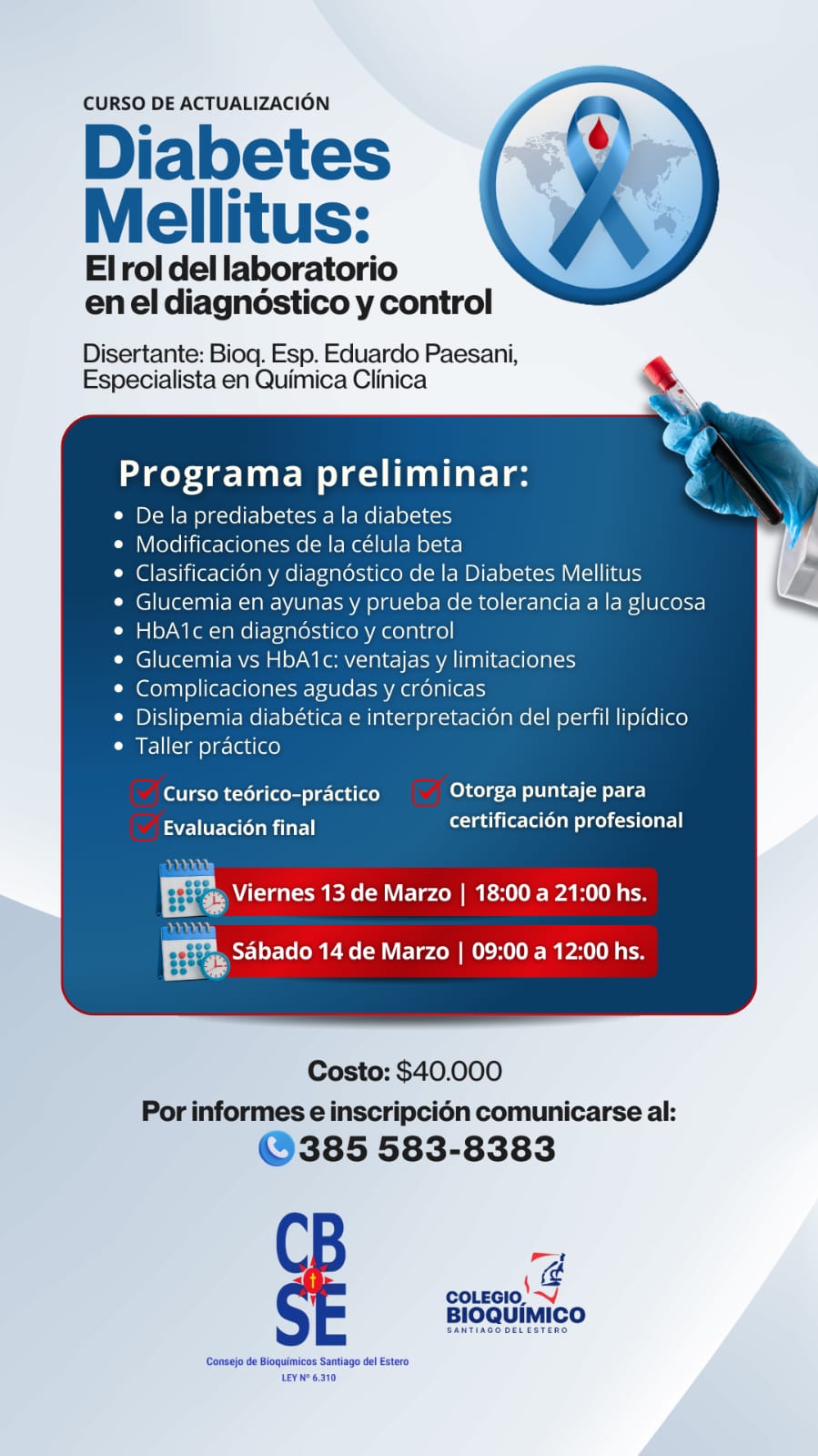 👨🔬 Disertada por el Bioq. Esp. Eduardo Paesani, especialista en Química Clínica.